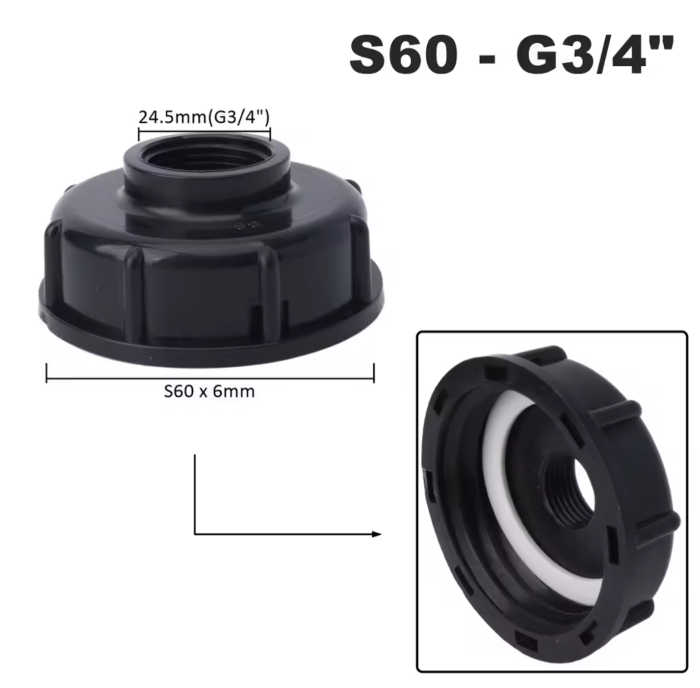 IBC tank fittings, (IBC) S60 thread to standard BSPP thread.